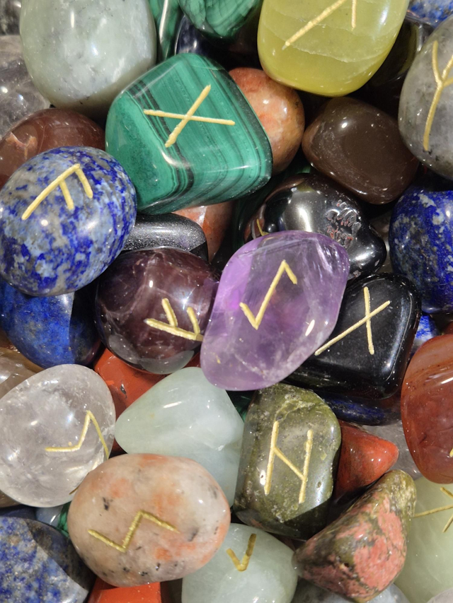 - 24 runes en Pierres Naturelles gravées par mes soins.