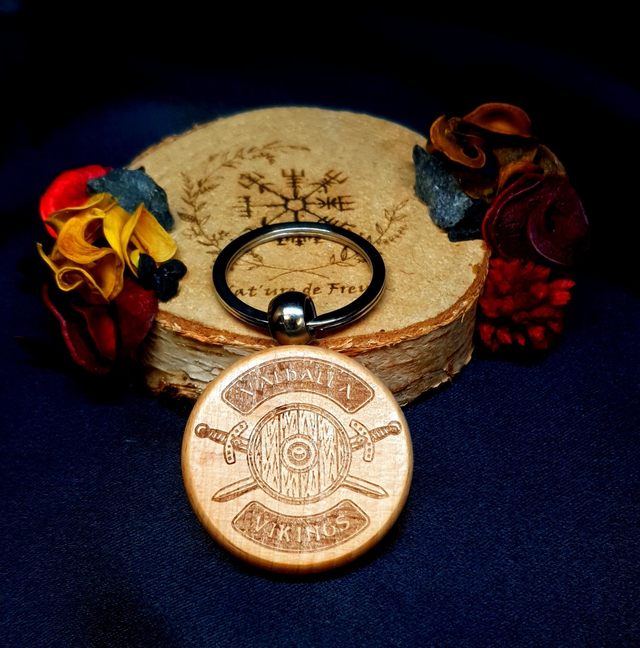 Porte-clés en bois gravé.