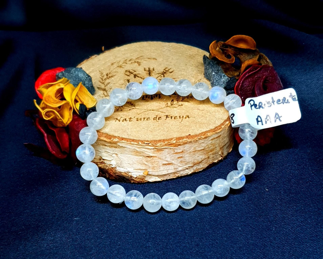 Bracelet en Péristérite, perles de 7/8 mm. Qualité : AAA. Origine : Inde. Tour de poignet : 16 à 18 cm